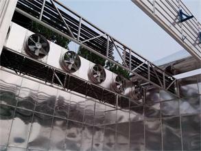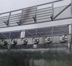 風機間內(nèi)采用鋁合金桁架連接,下棚板采用鋁合金型板,其剛性強度及防腐性能良好。